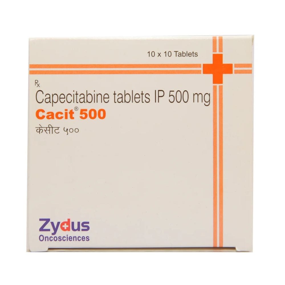 Cacit 500mg Tablet contains Capecitabine, a prodrug that is converted into 5-fluorouracil (5-FU) in the body, which is a potent chemotherapy agent. This medication is primarily used in the treatment of certain cancers, including metastatic breast cancer and colorectal cancer. By targeting and inhibiting the growth of cancer cells, Capecitabine helps manage and reduce tumor size as part of a broader cancer treatment regimen.