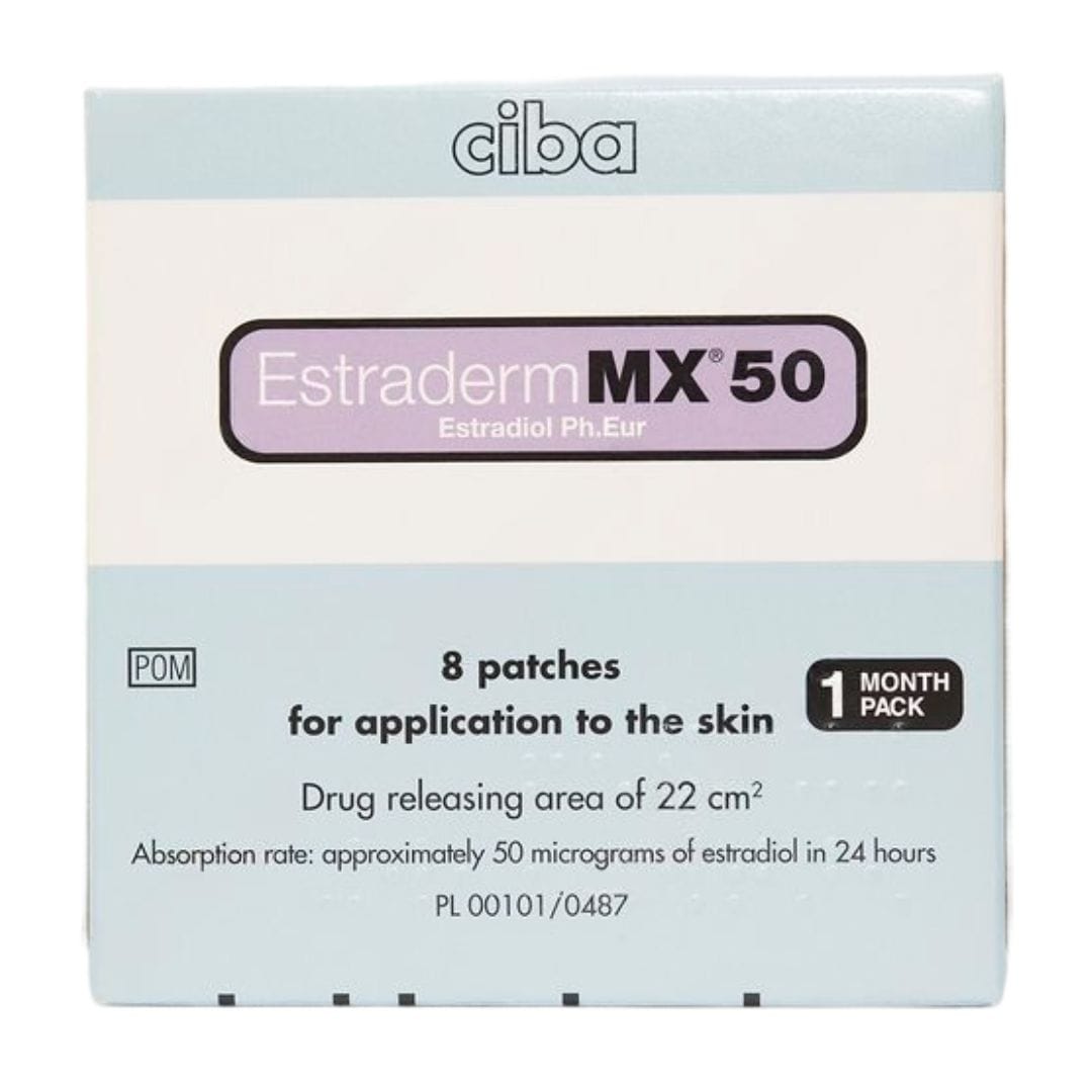 Estraderm MX 50 patch delivers 50 mcg/day of estradiol, the primary form of estrogen, through the skin over 24 hours.