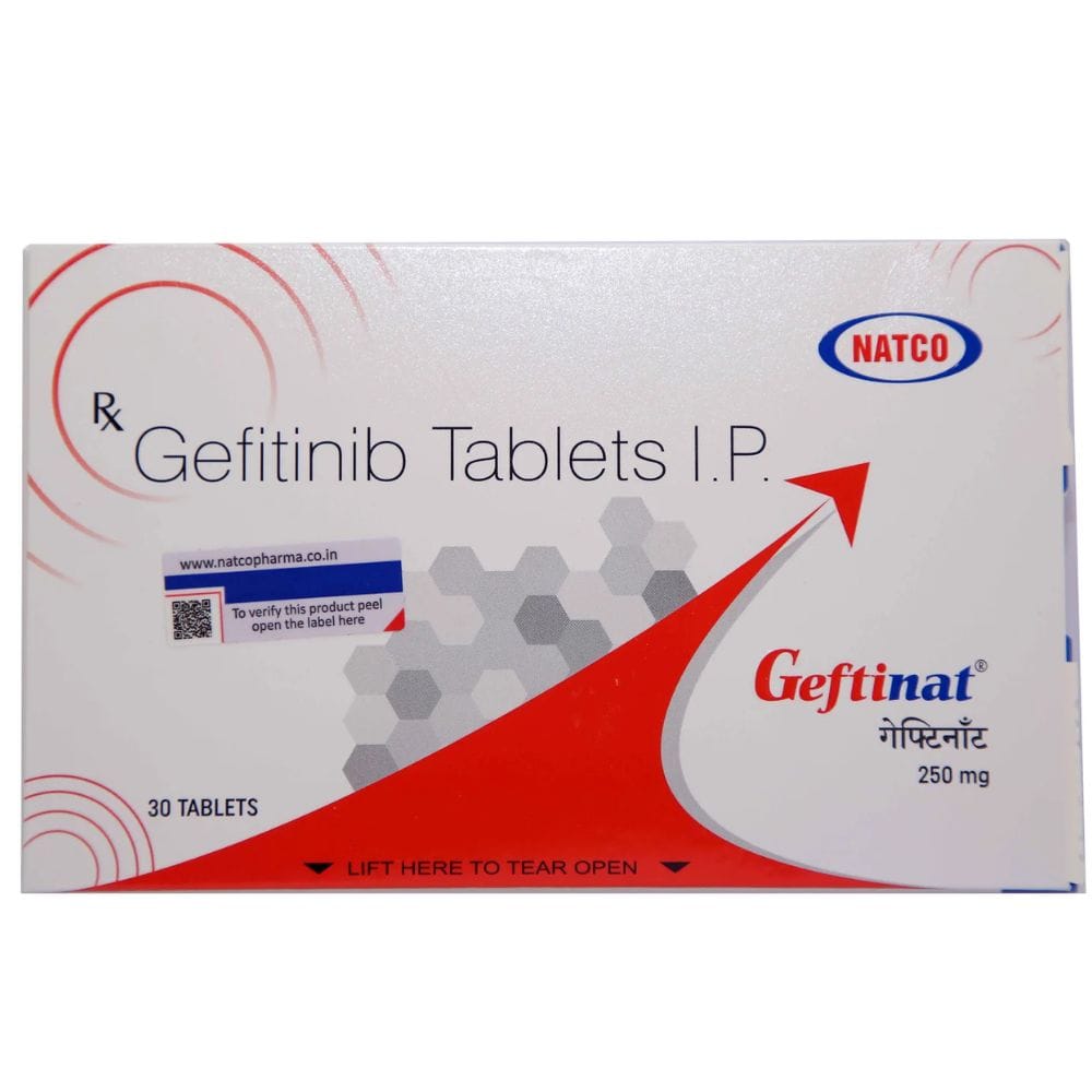 Geftinat 250mg Tablet contains Gefitinib, a potent tyrosine kinase inhibitor that specifically targets the epidermal growth factor receptor (EGFR). This medication is widely used in the treatment of non-small cell lung cancer (NSCLC). By interfering with EGFR’s signaling pathways, Gefitinib disrupts cancer cell growth, making it a vital component in targeted cancer therapy.